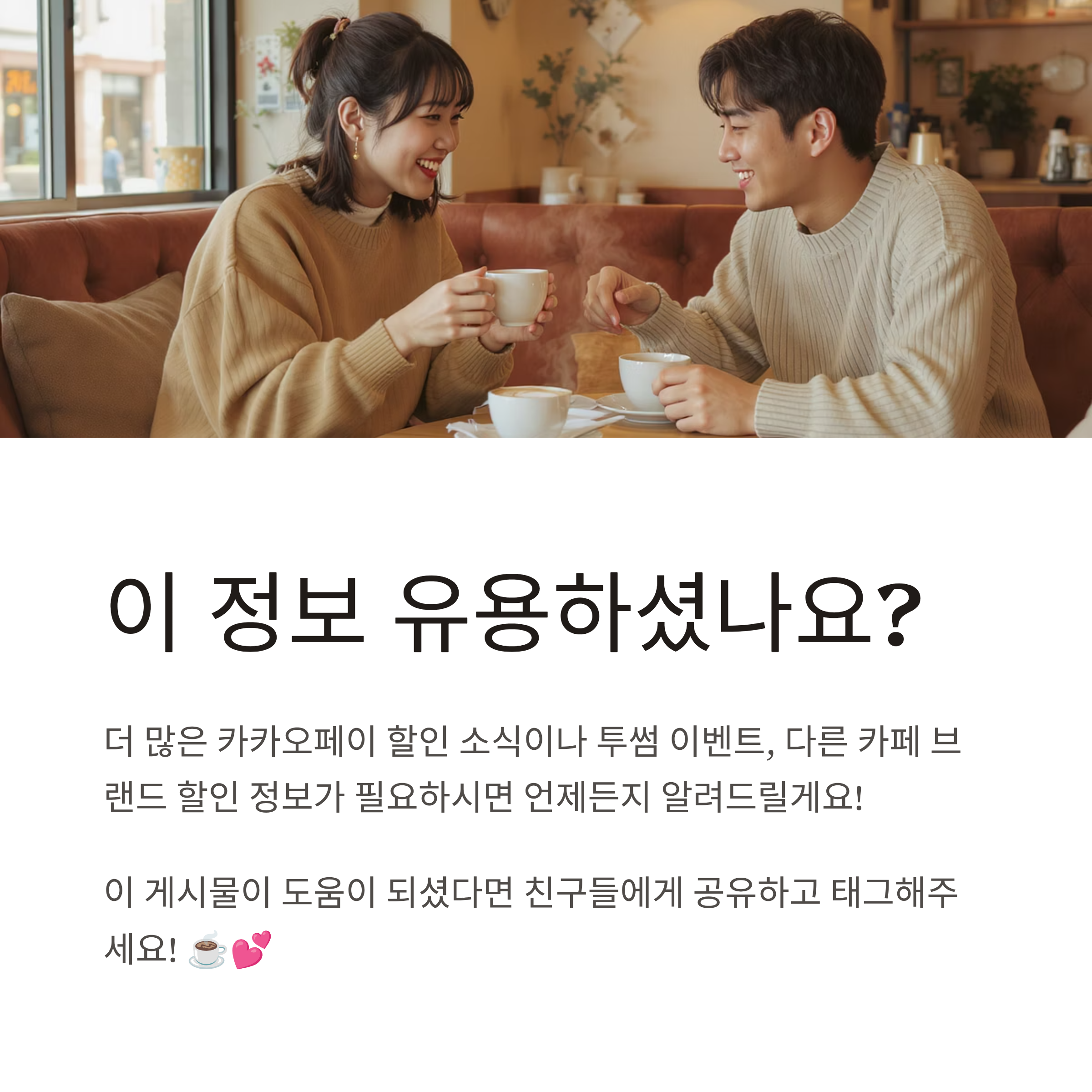 다른 카페 브랜드 할인 정보도 필요하시면 언제든지 알려드릴게요! 다음에 또 유익한 정보로 찾아뵙겠습니다. ☺️