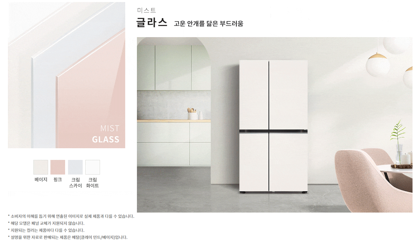 - 삼성 비스포크 871L 양문형 냉장고: 다양한 색상 조합으로 인테리어 맞춤 가능