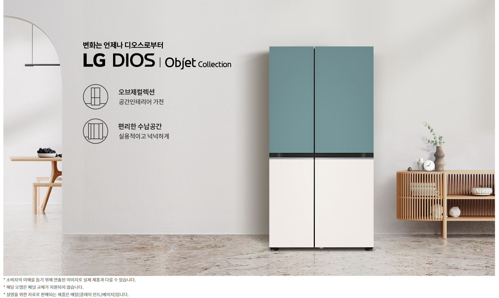 저는 이번에 냉장고를 고르면서 실용성 + 인테리어 효과 두 가지를 가장 중요하게 생각했어요. LG 디오스 오브제컬렉션은 이 두 가지를 완벽하게 충족시켜주더라고요.