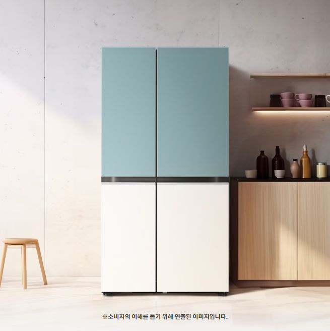 👉 오브제컬렉션의 가장 큰 장점 중 하나예요. 주방 톤에 맞춰 색상 고르실 수 있어서, 냉장고가 집안 분위기에 자연스럽게 어울려요.