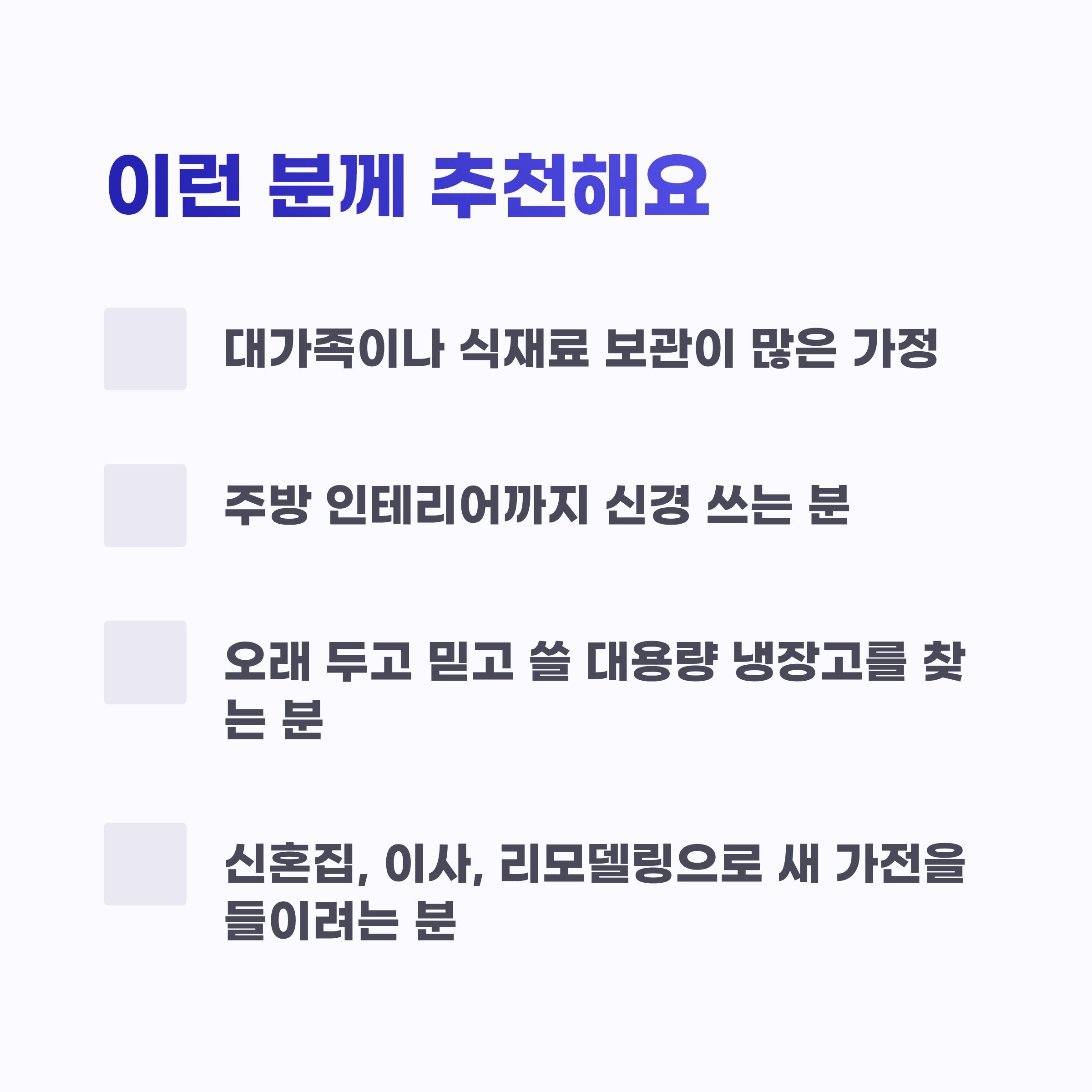 - 대가족이나 식재료 보관이 많은 가정